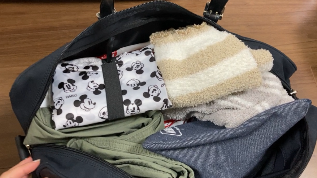 帰りはお土産で荷物が増えることを想定して、折りたためるボストンバッグも持っていきました。